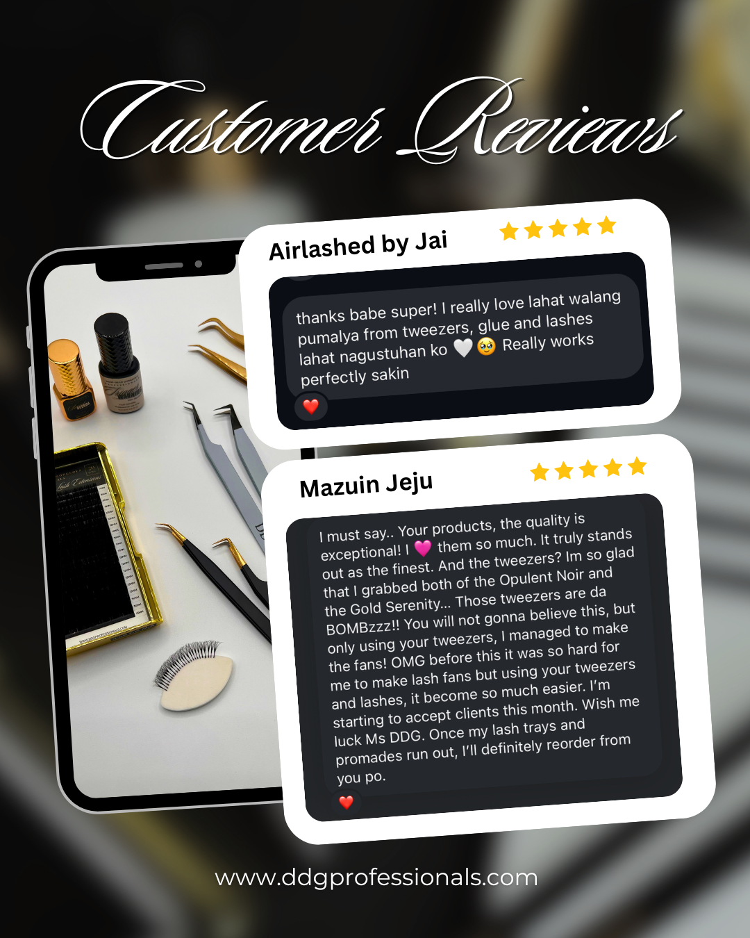 Beyond professional services, DDG proudly offers a curated line of premium lash extension products—including top-tier lashes, precision tweezers, reliable adhesives, and more—crafted for both rising and seasoned lash artists.